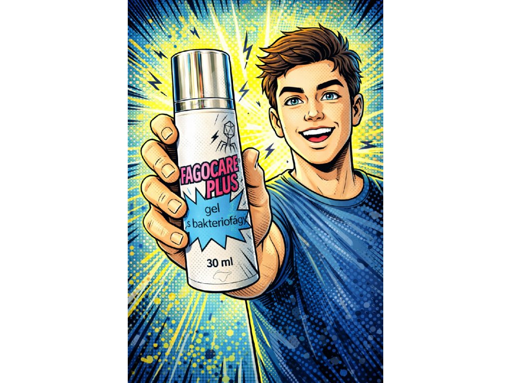 FAGOCARE PLUS ® gel obsahuje bakteriofágy a endolysiny působící proti bakteriím Staphylococcus aureus a Cutibacterium acnes, dvěma druhům spojovaným se vznikem a průběhem akné.